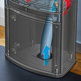 Krosnelė gali būti prijungiama per grindis arba per sieną. Naudojant šią jungtį, užtikrinamas šviežio, prisotinto deguonies oro tiekimas į degimo kamerą, todėl garantuojamas geresnis degimas. Iš krosnelės patalpos oras nėra naudojamas degimui, todėl galite mėgautis gaivesne aplinka. Ši jungtis idealiai pritaikyta Contura krosnelėms, sujungimas yra itin paprastas.
