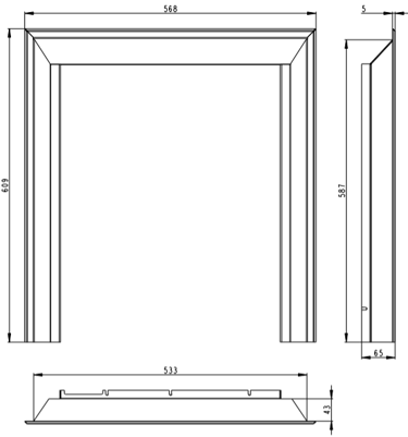 Apdailos rėmas, 3jų pusių, židiniui D2L, DB2L, 60 mm. Prekės kodas: Z9ROM-D2LRAM03