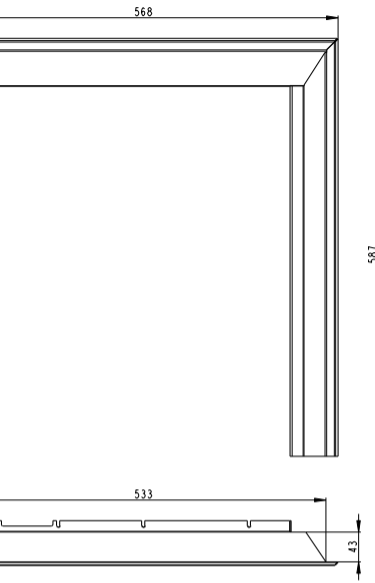 Rėmas 4 dalių, židiniams H2N, HWA2N, HW2N (590x500). Prekės kodas: Z9ROM-H2NRAM06