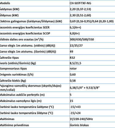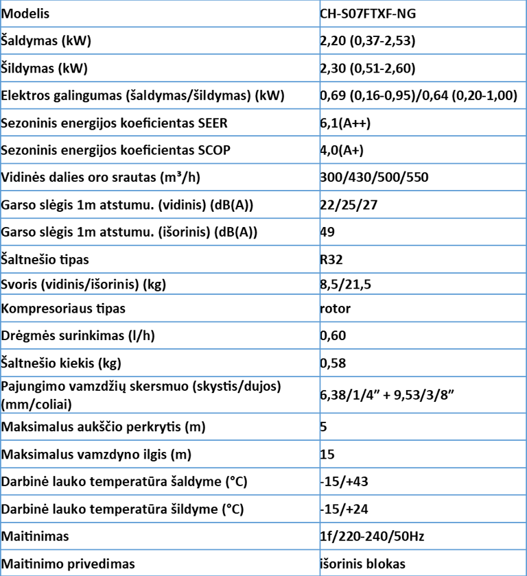 Cooper&Hunter VITAL Inverter CH-S07FTXF-NG efektyvus šildymas iki -15°C