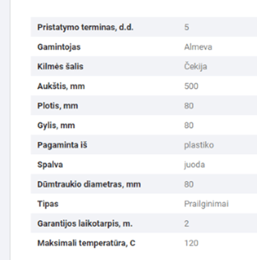 STARR vienasienio dūmtraukio prailginimas d80, 0,5m Prekės kodas: K9ALM-PPRM58